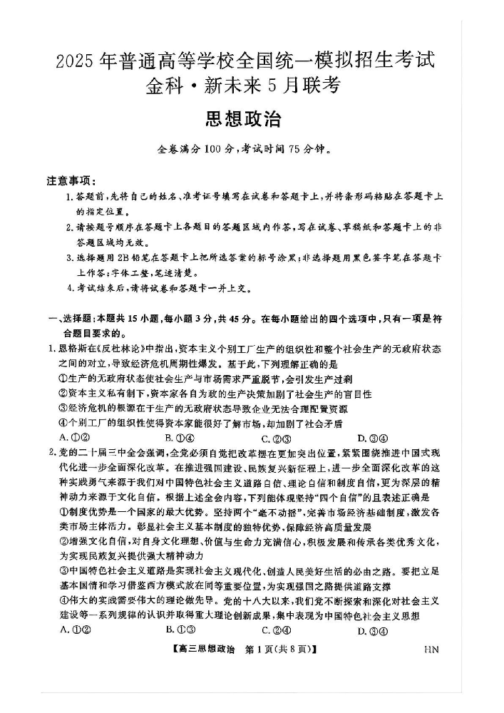 2026-01-09阅读全文 >>2025届高三下学期5月联考(全科)河南省金科新未来 政治试卷你刷过的每一套试卷,都是通往理想的车票;你背过的每一篇课文,都是打开世界的钥匙。别停,向前就是希望。在此向大家分享20···