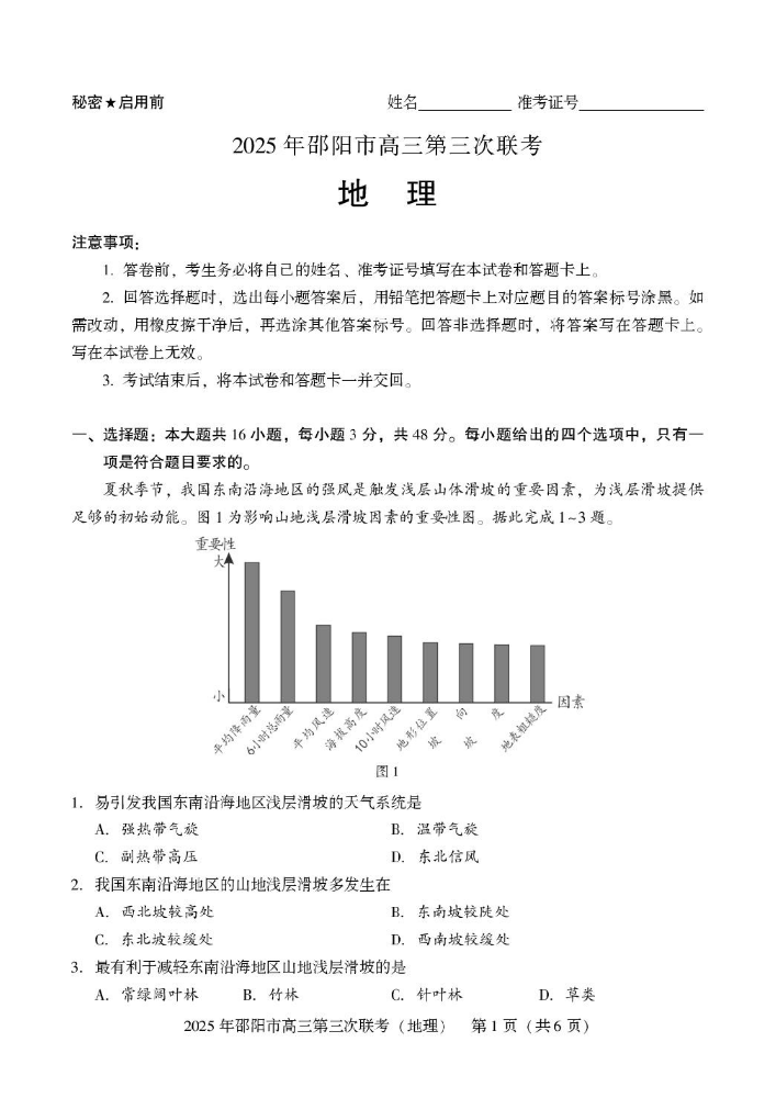 2026-01-17阅读全文 >>邵阳市高三下学期第三次联考(全科)2025届湖南省 地理试卷时间会公平对待每一个人:你在游戏中挥霍它,它还你平庸;你在书本中沉淀它,它赠你惊喜。在此向大家分享邵阳市高三下学期第三次···