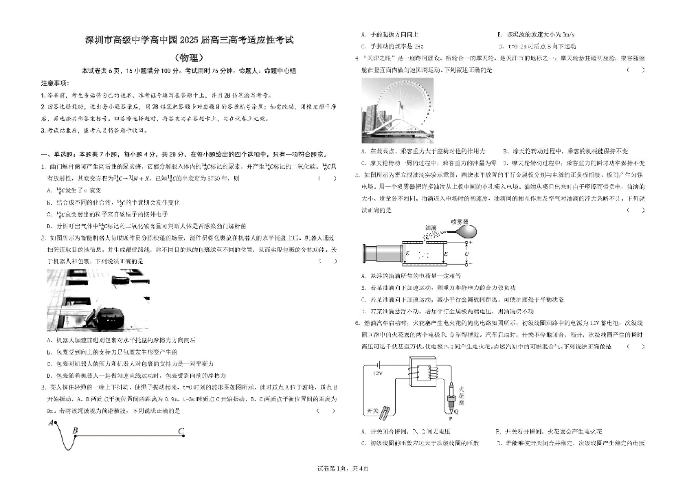 2026-01-20阅读全文 >>2025届高三高考适应性考试(全科)广东省深圳市高级中学高中园 物理试卷别抱怨起点低,丑小鸭变天鹅前也在默默扎根。从基础开始,一步一个脚印,你终会成为想成为的人。在此向大家分享20···